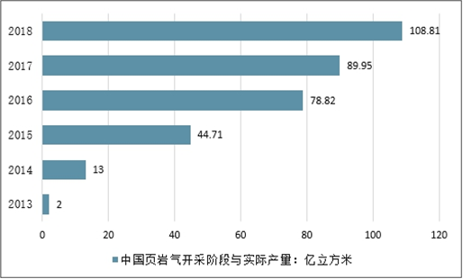 中国页岩气开采阶段与实际产量(单位:亿立方米)