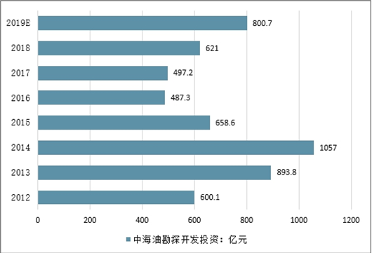 2012-2013年,三大石油公司的勘探开发投资呈上升趋势;2014年以来国际原油价格下跌,三大石油公司勘探开发投资呈下降趋势,至2016年合计下降至2111.7亿元;2017年以来随着国际原油价格回升,以及我国为降低原油对外依存度,三大石油公司加大了能源开发力度,勘探投资开发呈上升趋势,预计2019年三大石油公司勘探开发投资将达到3678.7亿元。这对油服行业的发展来说,是极大的利好。