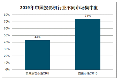 从不通投影机市场的竞争来看,2019年家用消费市场的前五大厂商分别为极米XGIMI、坚果、小米、Epson和海信,合计份额达到43%;而商用市场的前五大厂商分别为Epson、BenQ、NEC、松下和Sony,其中Epson(爱普生)市场份额占比达到24%,前十品牌市场份额占比达到74%。综合来看,不论是家用消费市场还是商用市场,其市场集中度都处于较高水平。