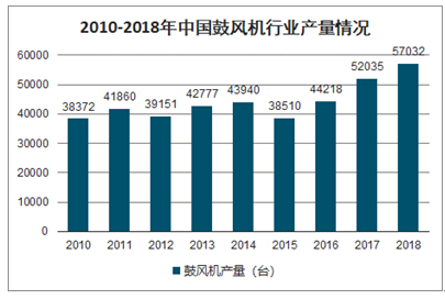 2018年国内鼓风机产量57032台,其中,罗茨鼓风机产量52050台,离心鼓风机产量4982台 。