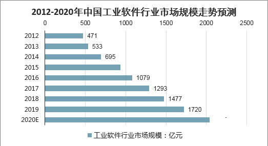 数据显示:2019年,我国工业软件产品收入1720亿元,较2018年增长16.45%。2012-2019年,我国工业软件产品收入年复合增长率为20.34%。据预测,2020年,我国工业软件产品收入将突破2000亿元.