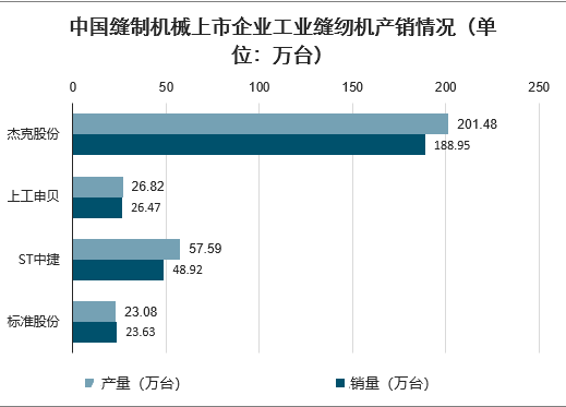 中国缝制机械上市企业工业缝纫机产销情况(单位:万台)