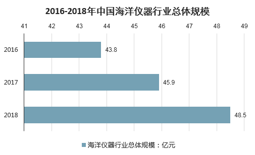 2018年我国海洋仪器行业总体规模约48.5亿元,同比2017年的45.9亿元增长了5.66%,近几年我国海洋仪器行业规模情况如下图所示: