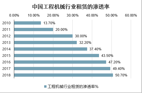 中国工程机械行业租赁的渗透率