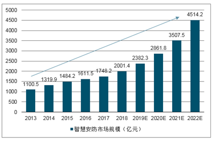 中国智慧安防市场规模预测