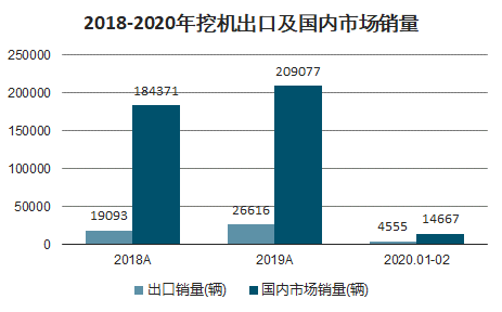 2019年我国挖机保有量为1448754辆,销量为235693辆,2020年1-2月份国内主要企业挖掘机销量19222台,同比下滑37%,其中国内市场销售14667台,同比下滑46.5%,出口销量4555台,同比增长48.2%。3月挖掘机销售则达到了创历史记录的49408台,同比增长11.6%。在春节和疫情冲击导致1-2月国内挖掘机需求骤降之后,国内挖掘机市场在3月份之后展露强劲的需求韧性。
