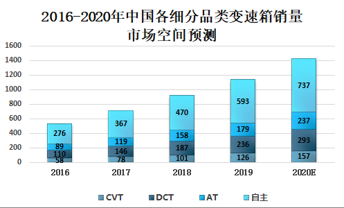 2016-2020年中国各细分品类变速箱销量市场空间预测
