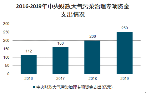国家高度重视大气污染防治工作,根据《大气污染防治行动计划》,从2013年开始,中央财政设立大气污染防治专项资金,“十二五”期间共安排254亿元中央财政支出,用于支持京津冀及周边、长三角、珠三角治理雾霾。2016年下达大气污染防治专项资金112亿元,支持京津冀、长三角、珠三角等重点区域落实“大气十条”。2019年中央财政安排250亿元用于大气污染防治。此外,中央财政还通过可再生能源专项资金、节能减排专项资金、工业结构调整专项资金等资金渠道,支持各地调整能源结构、推进产业绿色发展,改善环境空气质量。