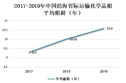 2017-2019年中国沿海省际运输化学品船平均船龄(年)