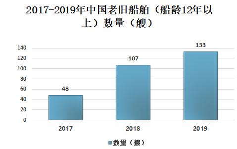 2017-2019年中国老旧船舶(船龄12年以上)数量(艘)