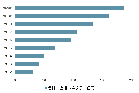 截至2017年底,全国智能快递柜市场规模达107亿元,相比2012年增长243%。预计到