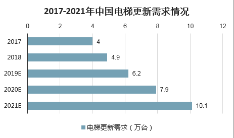 2017-2021年中国电梯更新需求情况(单位:万台)