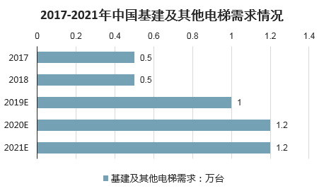 2017-2021年中国基建及其他电梯需求情况(单位:万台)