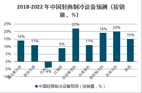 2018-2022年中国轻商制冷设备预测(按销量,%)