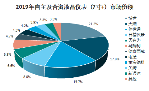 2019年自主及合资液晶仪表(7寸+)市场份额