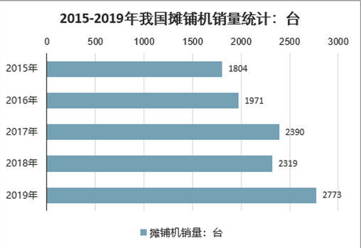 一、2015-2019年中国混凝土摊铺机行业需求统计