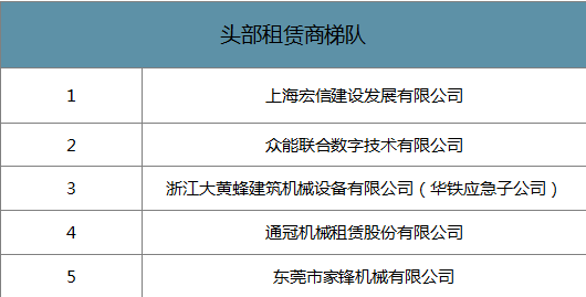 在排名前三的租赁公司中,宏信建发在2018年保有量成功破万台,判断截至2019年底保有量在1.5万台左右;而众能联合在2019年设备保有量破万台。徐工广联在2018年底租赁规模就达到了7000台,预计至2019年年底整个保有量规模接近万台。而浙江大黄蜂的母公司华铁应急,进入行业半年左右时间内,机队规模已达到近8000台,并已经布局40多个网点,很快将向万台保有量进军。永立建机永2019年正式进入高空平台市场,仅仅到8月份就完成了布局全国的六大基地开业,采购了500台吉尼臂架、2000台鼎力剪叉,大有来势汹汹之意。