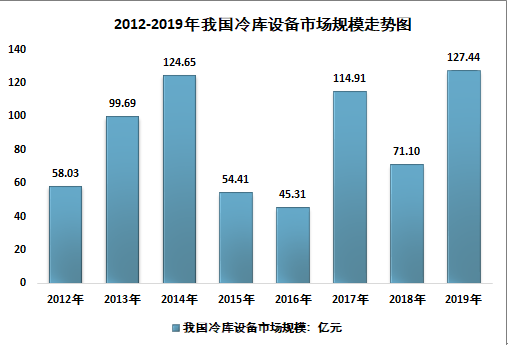 受各年度我国冷库新增容量差异等因素的影响,近年来我国冷库设备市场规模存在较大的波动性。据统计2018年我国冷库设备市场规模为71.10亿元,2019年我国冷库设备市场规模增长至127.44亿元。