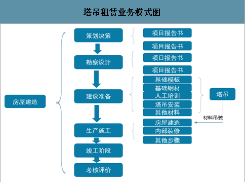 中国产业研究报告网发布的《2022-2028年中国塔吊租赁服务市场深度研究与建筑企业在施工过程中需要将大量的人、物、料由地面运送到指定高度、位臵,这个过程最主要的工具就是塔吊,由于塔吊不方便长途运输,以及其高额的运营维护成本,因此建筑公司通常将这部分环节工作以租赁塔吊设备的方式委托给塔吊租赁企业完成。对于塔吊租赁企业,其通过融资租赁、分期付款或者自有资金积累等方式向制造商购买塔吊等设备,再以经营租赁方式租给建筑施工企业,并通过收取租金收回投资成本、获取经营收益。