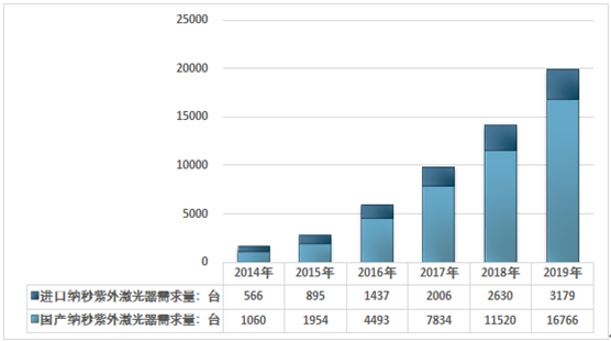 2014-2019年中国纳秒紫外激光器细分需求量情况