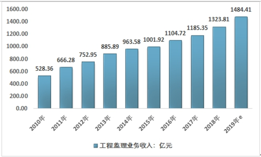 2010-2019年中国工程监理行业收入情况