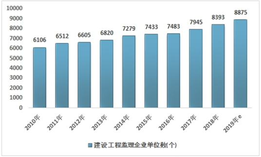 2010-2019年中国工程监理行业企业数量