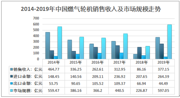 2014-2019年中国燃气轮机销售收入及市场规模走势