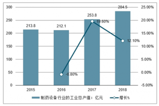 2015-2018年制药设备行业的工业总产值及增长率走势