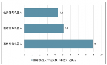 2018年中国家用服务机器人、医疗服务机器人和公共服务机器人市场规模预计分别为8.9亿美元、5.1亿美元和4.4亿美元,家用服务机器人和公共服务机器人市场增速相对领先。