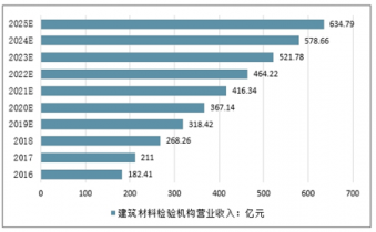 2016-2025年我国建筑材料检验机构营业收入预测