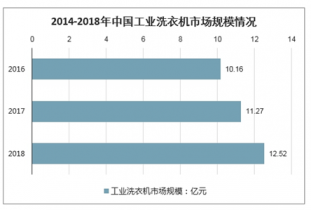2018年我国工业洗衣机市场规模约12.52亿元,同比2017年的11.27亿元增长了11.09%。