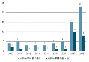 目前中国现有加氢站数量稀少。截至2018年国内建成可运行加氢站23个。运营加氢站7家,分别位于北京、上海、郑州、深圳、大连,佛山、四川。
