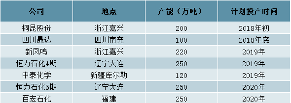 PTA新增产能统计