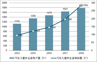 2014-2018年我国汽车儿童安全座椅产销量走势