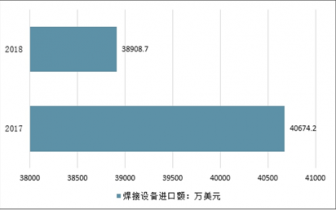 2017年我国焊接设备进口额为40674.2万美元,2018年我国焊接设备进口额为38908.7万美元,同比下降4.34%。