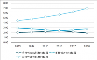 2013-2018年全球手持式条码扫描器销售情况(亿美元)