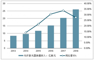 2018年光纤激光器销售收入为26.0亿美元,2009-2018年年复合增长率为35.50%,远高于同期激光器整体以及工业激光器的增速。
