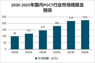 在新技术、新的应用领域及人口老龄化推动下,未来POCT市场仍将保持较快增长。预测到2025年,中国POCT市场规模将达到225亿元左右。