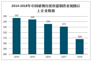 2018年,我国玻璃包装容器制造行业规模以上企业(年营业收入2000万元及以上全部工业法人企业)有308家,较2017年减少23家。