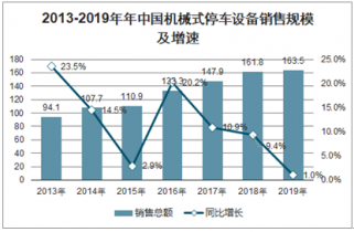 2013年以来,我国机械式停车设备销售规模持续提升,但整体增速震荡下行,2019年,我国机械式停车设备销售规模为163.5亿元,同比增长1.0%。