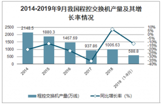 2014-2019年9月我国程控交换机产量及其增长率情况