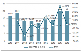 2010-2018年中国袋式除尘行业利润总额及增速趋势
