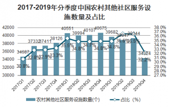 2017-2022年分季度中国农村其他社区服务设施数量及占比