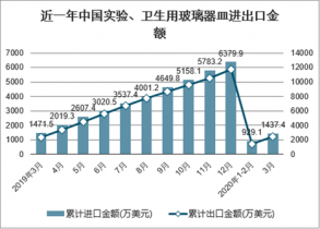 近一年中国实验、卫生用玻璃器皿进出口金额