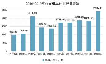 2010年我国模具行业产量982.37万套,到2022年增长到了2425.11万套。近几年我国模具行业产量情况如下图所示: