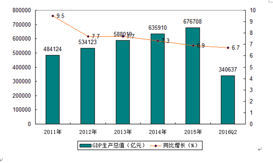 图表 4 2008-2016年中国国内生产总值及增长变化趋势图 13