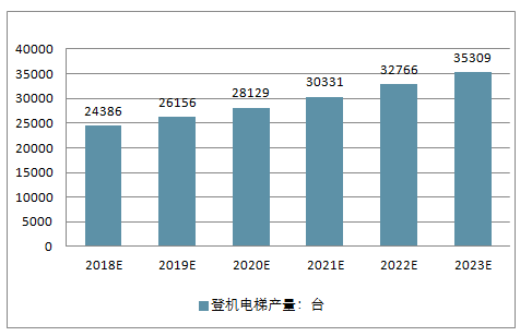 预计2018年登机电梯产量约为24386台,并保持较平缓的增长率增长。