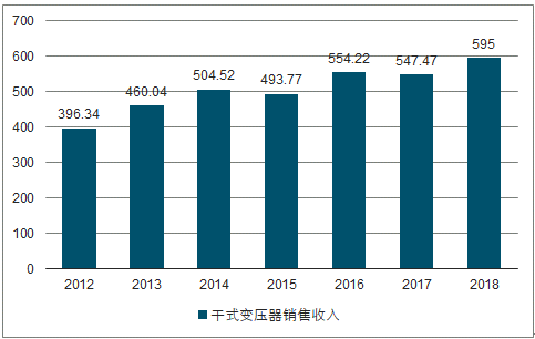 2012-2019年中国干式变压器销售收入