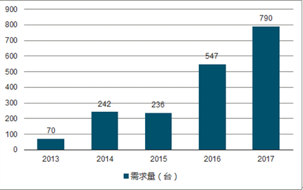 2013-2017年我国变电站设备巡检机器人需求量统计