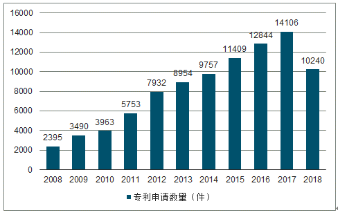 2008年以来,我国变压器制造行业相关技术专利申请数量增长迅速,进入专利申请活跃期。2017年,我国变压器相关技术专利申请数量为14106件,达到历史最高值;2018年技术专利申请数量稍有回落,为10240件。